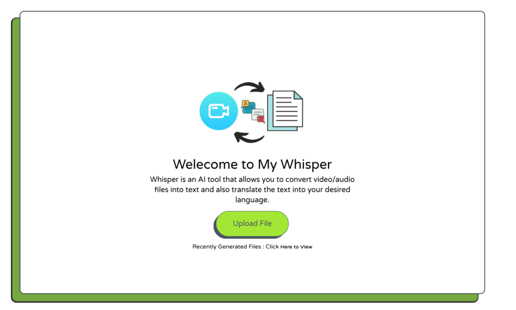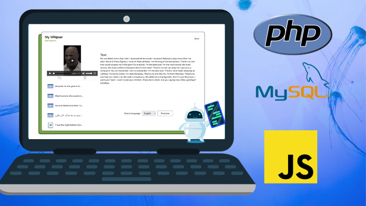 In this web application, "Automatic Speech Recognition Using PHP, MySQL JS WITH Whisper AI," you will have the opportunity to access a powerful tool that allows you to convert video and audio files into plain text with ease. This web application leverages the capabilities of OpenAI's AI model, enabling you to build your own Automatic Speech Recognition (ASR) tool using PHP. This ASR tool is designed to take video and audio files, transcribe their content, and offer the added functionality of translating the text into multiple languages.