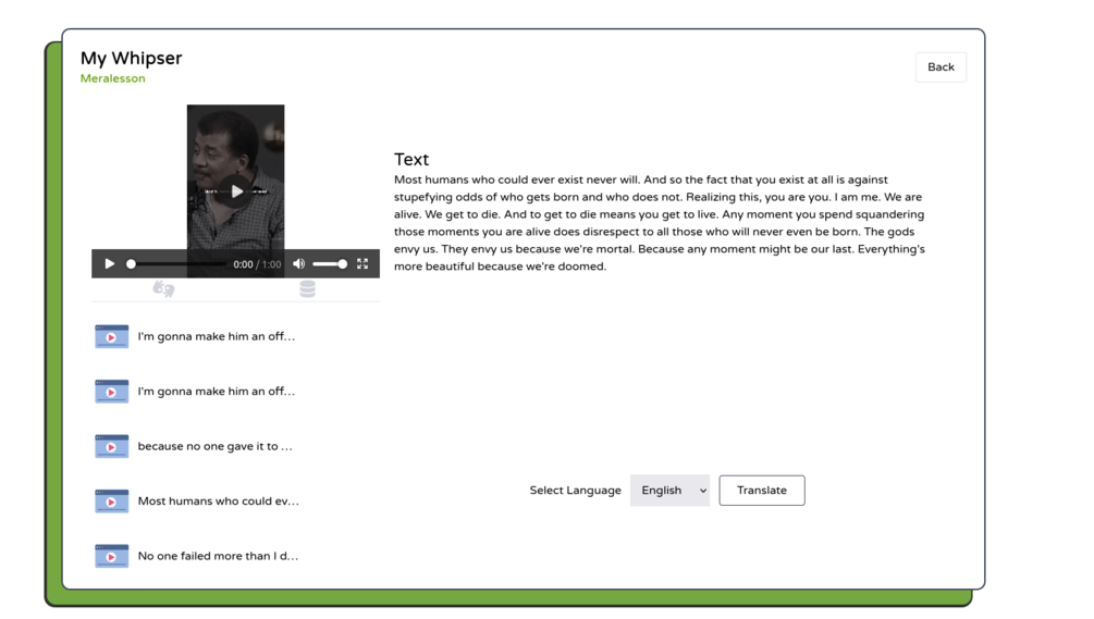Translated the English Video to Spanish Language